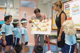 - 早上由外籍老師帶領唱英文歌及講英文故事;小一至小三PLPRW計劃,學生每星期最少帶二本英文圖書回家閱讀;語常會50萬英文圖書閱讀計劃,為小四至小六年級學生提供不同種類和程度的圖書給他們閱讀;全校學生每星期最少有兩節外藉老師課堂,為學生提供更多英語學習環境的機會。